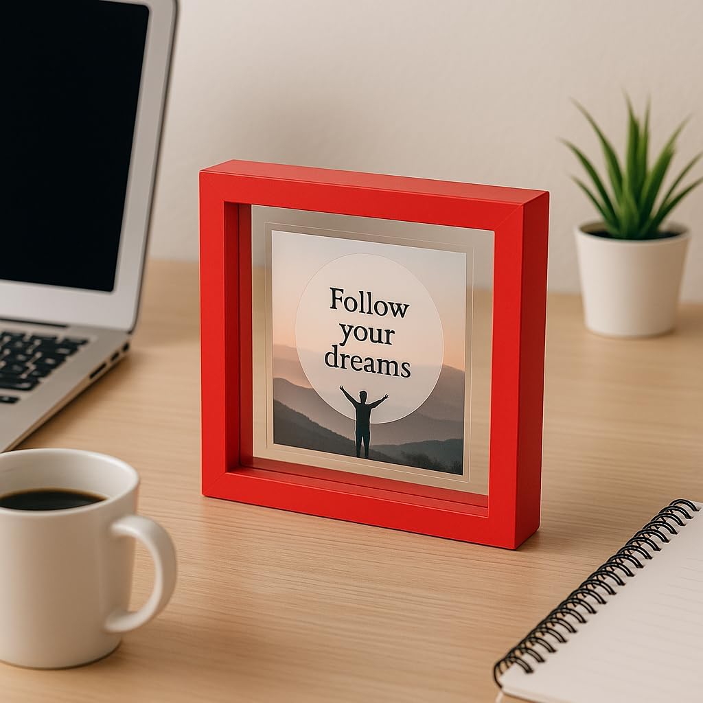 Cadre photo transparent MDF rouge – 10×10 cm (double vitrage)
